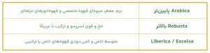 اندازه دانه: بزرگتر از عربیکا و روبوستا.